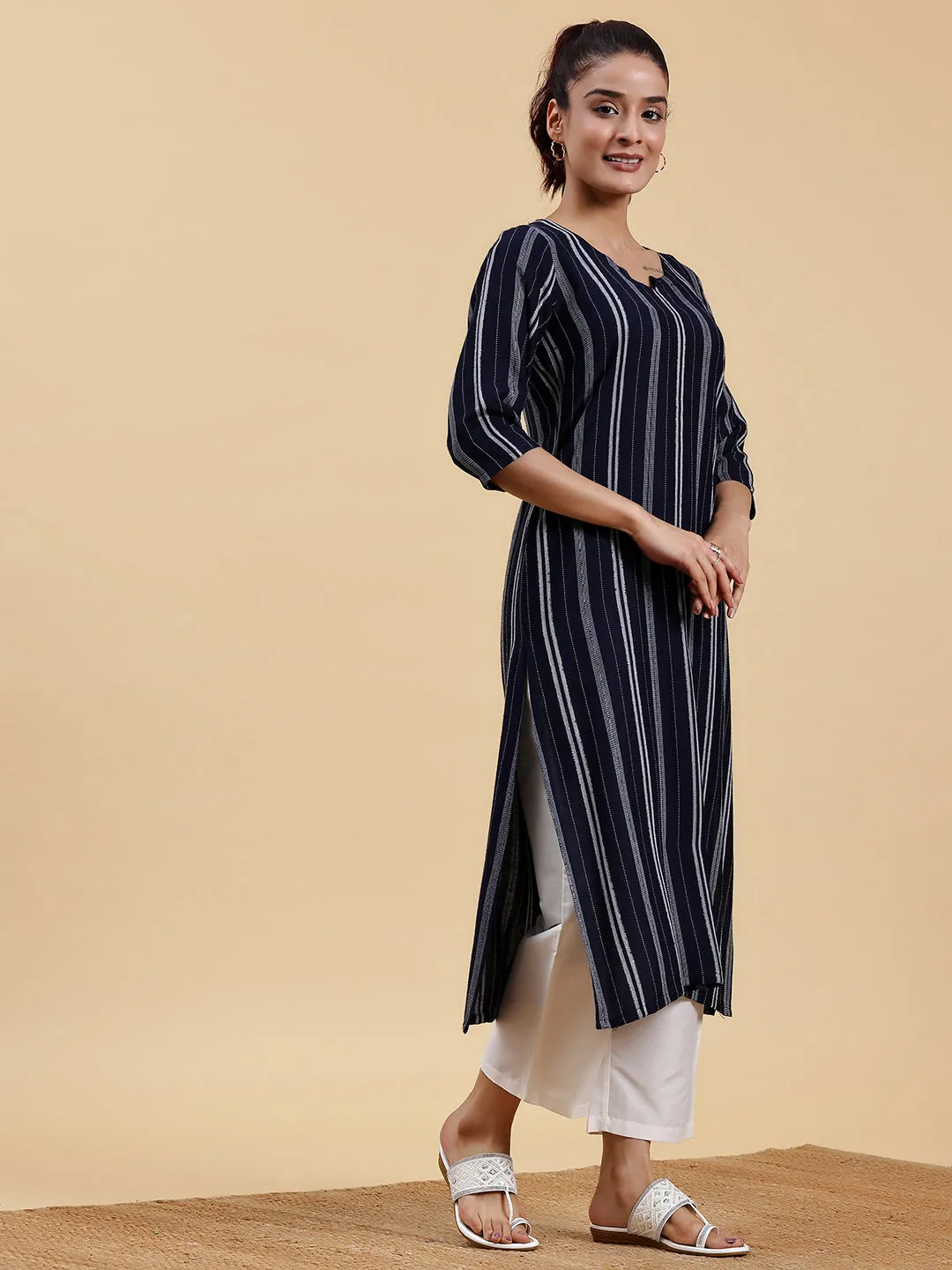 Navy Blue Woven Design Rayon Straight Kurta